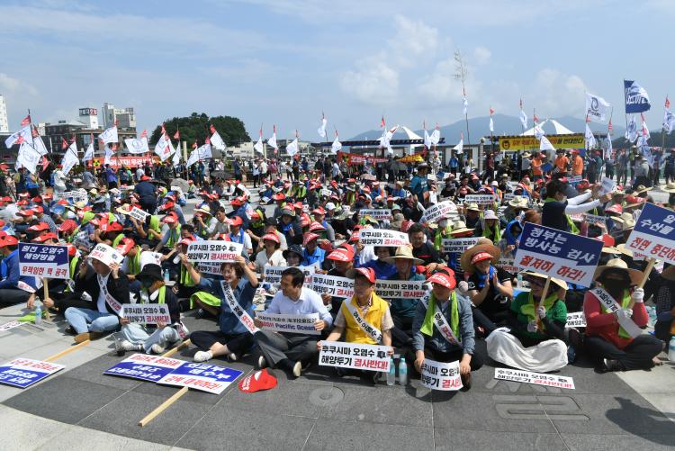 8¿ù 16ÀÏ ¿ÀÈÄ 2½Ã 30ºÐ °íÈï ³ìµ¿Ç× Àαٿ¡¼ ¾î¾÷Àΰú ±ºÀÇȸ ÀÌÀçÇÐ ÀÇÀåÀ» ºñ·Ô ±ºÀÇ¿ø(11¸í) ¹× ¼ö»ê°ü°èÀÚ µî ¾î¹Î 1,000¿©¸íÀÌ Ç÷¡Ä«µå¿Í ÇÍÄÏÀ» µé°í ¡°ÈÄÄí½Ã¸¶ ¿À¿°¼ö ÇØ¾ç Åõ±â ÀúÁöÇ϶ó!, ¾î¹Î ´Ù Á״´Ù!¡± ÀϺ» ¿À¿°¼ö ¹æ·ù ÀúÁö ±Ôź ´ëȸ¸¦ °¡Á³´Ù.