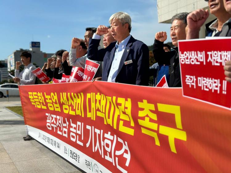 Àü³ó±¤ÁÖÀü³²¿¬¸ÍÀº ±âÀÚȸ°ß¹®À» ÅëÇØ ¡®±â¸§°ª, Àü±â·á, ºñ·á°ªÀÌ °è¼Ó ¿Ã¶ó ³ó°¡ ½Ã¸§ÀÌ ±í¾îÁö°í ÀÖ´Ù¡¯¸ç ƯÈ÷, ¡®Àü±â¿ä±ÝÀº À۳⿡ ºñÇØ 2¹è Á¤µµÀÇ ¿ä±ÝÀ» ³³ºÎÇϰí ÀÖ´Ù¡¯°í ÁÖÀåÇß´Ù. ¶ÇÇÑ ¡®ºñ·á°ª, Àü±â·á´Â ¿ø°¡³ª ¿øÀÚÀç °¡°Ý »ó½Â¿¡ ¿¬µ¿ÇÏ¿© ¿Ã¸®¸é¼ ³ó»ê¹° °¡°Ý¿¡´Â »ý»êºñ¸¦ ¹Ý¿µÇÏÁö ¾Ê´Â ºñ»ó½ÄÀûÀÎ Çö»óÀÌ ³ªÅ¸³ª°í ÀÖ´Ù¡¯°í ºñÆÇÇß´Ù.