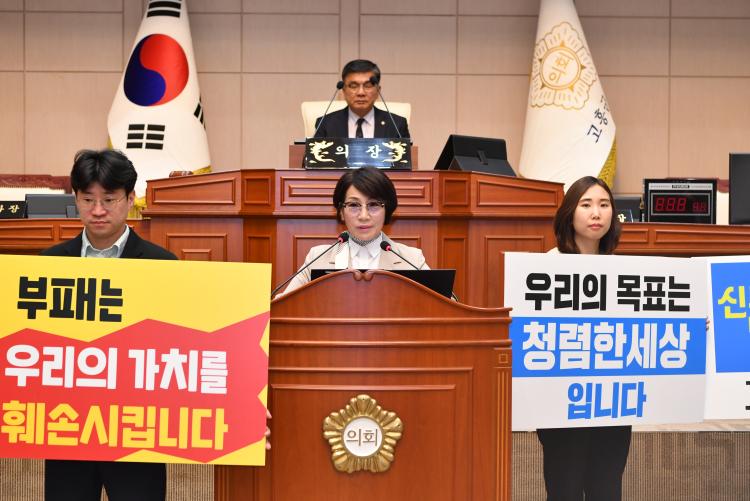 °íÈﱺÀÇȸ(ÀÇÀå ÀÌÀçÇÐ)´Â 19ÀÏ Á¦324ȸ ÀÓ½Ãȸ Æóȸ ÈÄ, º»È¸ÀÇÀå¿¡¼ ÀÌÀçÇÐ ÀÇÀåÀ» ºñ·ÔÇÑ 11¸íÀÇ ÀÇ¿ø°ú Àü Á÷¿øÀÌ Âü¿© ¡°¿ì¸®ÀÇ ¸ñÇ¥´Â û·ÅÇÑ ¼¼»óÀÔ´Ï´Ù.¡±¶ó´Â ¼ÕÆÖ¸»À» µé°í û·Å¼¾à¼ ³¶µ¶, ¹ÝºÎÆÐ¡¤Ã»·Å ½Çõ °áÀÇ´ëȸ¸¦ °³ÃÖÇß´Ù.