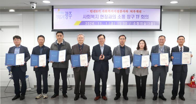 °í±¤¿Ï ÇàÁ¤ºÎ½ÃÀåÀº ¡°¹Î¼±8±â »çȸº¹Áö½Ã¼³ Á¾»çÀÚ Ã³¿ì°³¼±À̾߸»·Î ²÷ÀÓ¾ø´Â ÇöÀå°ú ¼ÒÅëÀÇ °á½ÇÀÌÀÚ ¼º°úÀÌ´Ù¡±¸ç ¡°ÃÎÃÎÇÏ°í µû¶æÇÑ µ¹º½µµ½Ã ±¤ÁÖ¸¦ ¸¸µé±â À§Çؼ´Â Á¾»çÀÚÀÇ ¿ªÇÒÀÌ ¹«¾ùº¸´Ù Å©´Ù. ±× Á¾»çÀÚµéÀ» À§ÇØ ¼ÒÅëⱸÇùÀÇȸ À§¿ø´ÔµéÀÌ ÇöÀåÀÇ ¸ñ¼Ò¸®¸¦ »ý»ýÇÏ°Ô Àü´ÞÇØ ¼ÒÅëÀÌ È°¼ºÈµÉ ¼ö ÀÖµµ·Ï ¼±µµÀû ¿ªÇÒÀ» ÇØÁÖ±æ ±â´ëÇÑ´Ù¡±°í ¸»Çß´Ù.