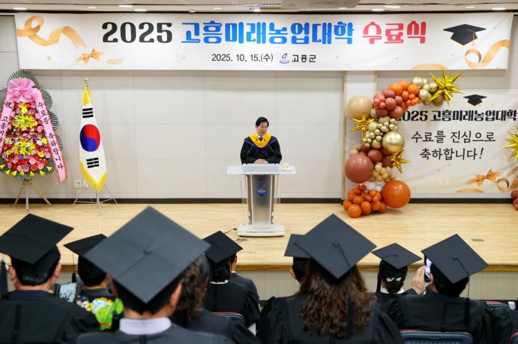 °íÈﱺ(±º¼ö °ø¿µ¹Î)Àº 15ÀÏ ³ó¾÷±â¼ú¼¾ÅÍ ´ë±³À°Àå¿¡¼ ¡®2025³âµµ °íÈï¹Ì·¡³ó¾÷´ëÇÐ ¼ö·á½Ä¡¯À» °³ÃÖÇϰí, Áö¿ª ³ó¾÷ÀÇ ¹Ì·¡¸¦ ¼±µµÇÒ Àü¹®³ó¾÷ÀÎ 36¸íÀ» ¹èÃâÇß´Ù.