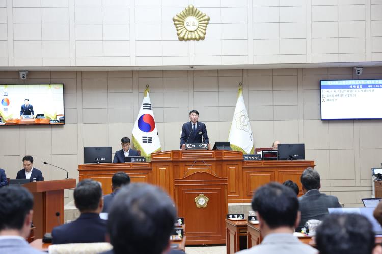 ¶ÇÇÑ, °íÈﱺÀÇȸ´Â Á¶¿µ±æ ÀÇ¿øÀÌ ´ëÇ¥ ¹ßÀÇÇÑ¡®Áö¹æÀçÁ¤ ½Å¼ÓÁýÇà Á¦µµ°³¼± Ã˱¸ °ÇÀǾȡ¯À» ±ºÀÇ¿ø Àü¿ø Âù¼ºÀ¸·Î äÅÃÇß´Ù. À̹ø °ÇÀǾÈÀ» ÅëÇØ ±ºÀÇȸ´Â¡°°èȹÀûÀ̰í ü°èÀûÀÎ ÀçÁ¤ ¿î¿µÁ¤Ã¥ ¼ö¸³À¸·Î Áö¼ÓÀûÀ̰í È¿À²ÀûÀÎ ÀçÁ¤ÁýÇàÀÌ ÀÌ·ç¾îÁú ¼ö ÀÖµµ·Ï Á¦µµ°³¼±ÀÌ ÇÊ¿äÇÏ´Ù¡±°í °Á¶Çϸç, °ü°è±â°ü¿¡ °·ÂÈ÷ Ã˱¸ÇÏ¿´´Ù.