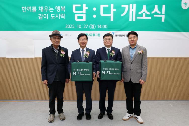 ±¤ÁÖ ±¤»ê±¸(±¸Ã»Àå ¹Úº´±Ô)°¡ Çϳª±ÝÀ¶±×·ì(ȸÀå ÇÔ¿µÁÖ)°ú ¼ÕÀâ°í Áö¿ª ¾î¸£½Å¿¡°Ô´Â ÀÏÀÚ¸®¸¦, Áֹο¡°Ô °Ç°ÇÑ ¸Ô°Å¸®¸¦ Áö¿øÇÏ´Â ¹ÝÂù µµ½Ã¶ô Á¦Á¶½Ã¼³, ¡®ÇÑ ³¢¸¦ ä¿ì´Â Çູ ´ã:´Ù(ÀÌÇÏ ´ã:´Ù)¡¯¸¦ ¿¾ú´Ù.