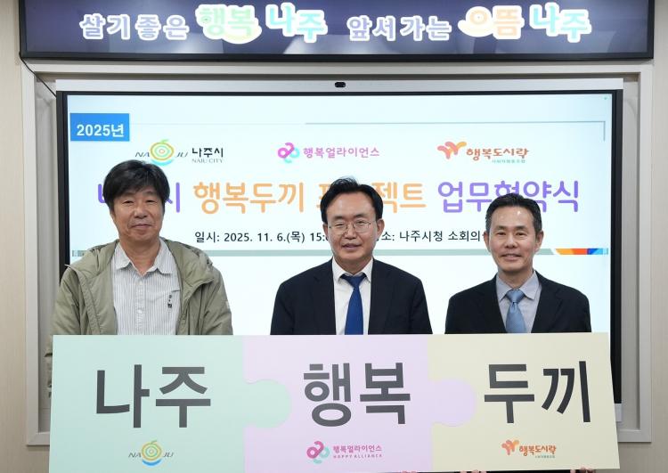 ³ªÁֽô 6ÀÏ ¿ÀÈÄ ½Ãû ¼ÒȸÀǽǿ¡¼ Çູ³ª·¡¢ß, Çູµµ½Ã¶ô»çȸÀûÇùµ¿Á¶ÇÕ°ú ÇÔ²² ¡®ÇູµÎ³¢ ÇÁ·ÎÁ§Æ®¡¯ ¾÷¹«Çù¾àÀ» ü°áÇß´Ù. ¿ÞÂʺÎÅÍ ÃÖÁØ Çູµµ½Ã¶ô»çȸÀûÇùµ¿Á¶ÇÕ »ç¹«±¹Àå, À±º´Å ³ªÁÖ½ÃÀå, Á¶¹Î¿µ Çູ³ª·¡¢ß º»ºÎÀå. (»çÁø Á¦°ø-³ªÁÖ½Ã)