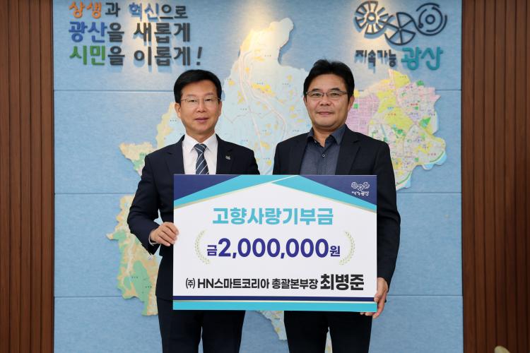 ±¤ÁÖ ±¤»ê±¸(±¸Ã»Àå ¹Úº´±Ô)´Â 13ÀÏ ÃÖº´ÁØ ¢ß¿¡ÀÌÄ¡¿£½º¸¶Æ®ÄÚ¸®¾Æ ÃѰýº»ºÎÀå°ú °û±Í±Ù ¢ß¹®ÈÀα¤ÁÖ ´ëÇ¥°¡ ±¤»ê±¸ Áö¿ª ¹ßÀüÀ» À§ÇØ °¢ 200¸¸ ¿ø¾¿ ÃÑ 400¸¸ ¿øÀÇ °íÇâ»ç¶û±âºÎ±ÝÀ» ±âŹÇß´Ù°í ¹àÇû´Ù.