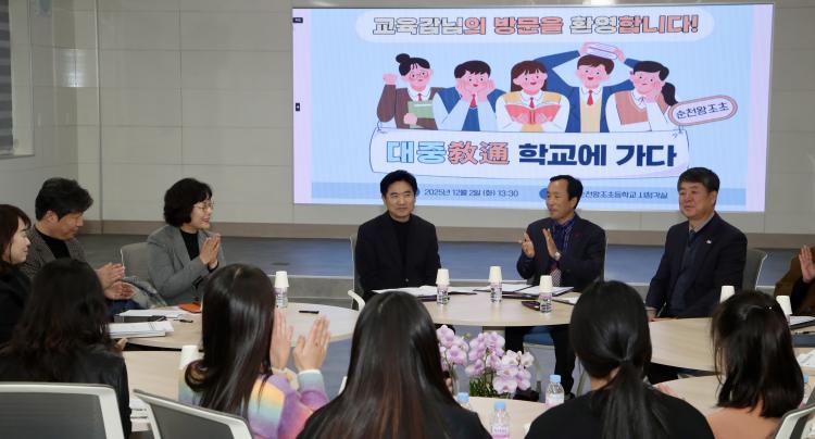 Àü¶ó³²µµ±³À°Ã»(±³À°°¨ ±è´ëÁß)Àº 12¿ù 2ÀÏ ¡®´ëÁß±³Åë, Çб³¹æ¹®¡¯À¸·Î ¼øÃµ¿ÕÁ¶ÃʵîÇб³¸¦ ã¾Æ, ÇлýÀÚÄ¡ Ȱ¼ºÈ¸¦ ÁÖÁ¦·Î ±³À°°¡Á·°ú Â÷´ãȸ¸¦ ¿°í, Çб³ ÇöÀåÀÇ ½Çõ »ç·Ê¿Í °³¼± ¹æ¾ÈÀ» °øÀ¯Çß´Ù.