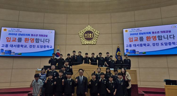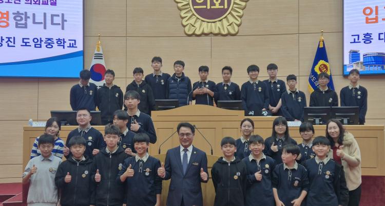 Àü¶ó³²µµÀÇȸ ¼ÛÇü°ï ÀÇ¿ø(´õºÒ¾î¹ÎÁÖ´ç, °íÈï1)Àº Áö³ 12¿ù 11ÀÏ Àü¶ó³²µµÀÇȸ º»È¸ÀÇÀå¿¡¼ ¿¸° 2025³â Á¦26ȸ ¡¸Ã»¼Ò³â ÀÇȸ±³½Ç¡¹¿¡ Âü¿©ÇÏ¿© °íÈï ´ë¼ÁßÇб³ Çлýµé°ú ¼ÒÅëÇÏ°í °Ý·ÁÇÏ´Â ½Ã°£À» °¡Á³´Ù.
