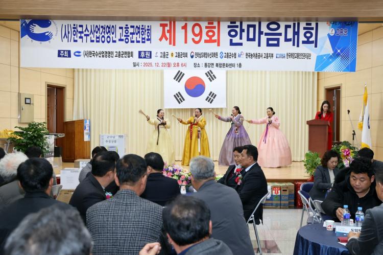 ¿ÃÇØ·Î 19ȸ¸¦ ¸ÂÀº °íÈﱺ ¼ö»ê¾÷°æ¿µÀÎ ÇѸ¶À½´ëȸ´Â ¼ö»ê¾÷°ú ¾îÃÌ ¹ßÀüÀ» À§ÇØ Çå½ÅÇØ ¿Â ¼ö»ê¾÷ °æ¿µÀÎÀÇ ³ë°í¸¦ °Ý·ÁÇϰí, ¾î¾÷Á¤º¸ ±³·ù¿Í »óÈ£ Ä£¸ñ µµ¸ð¸¦ À§ÇØ ¸¶·ÃµÆ´Ù.