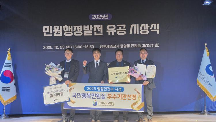 Àü¶ó³²µµ±³À°Ã»Àº 12¿ù 23ÀÏ Á¤ºÎ¼¼Á¾Ã»»ç ¹Î¿øµ¿ ´ë°´ç¿¡¼ ¿¸° ¡®±¹¹ÎÇູ¹Î¿ø½Ç¡¯ ÀçÀÎÁõ ½Ã»ó½Ä¿¡ ¹Î¿ø¾÷¹« °ü°èÀÚµéÀÌ Âü¼®ÇÑ °¡¿îµ¥, ÇàÁ¤¾ÈÀüºÎ Àå°ü ǥâ°ú ÀÎÁõÇöÆÇÀ» ¼ö¿©¹Þ¾Ò´Ù.