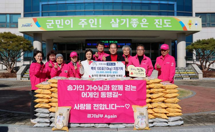 ¼Û°¡ÀÎ °ø½Ä ÀÀ¿ø ¸ðÀÓ(ÆÒŬ·´)ÀÎ ¡®°æ±â³²ºÎ ¾î°ÔÀΡ¯Àº ÃÖ±Ù Ãë¾à°èÃþ Áö¿øÀ» À§ÇØ 300¸¸ ¿ø »ó´çÀÇ ¹é¹Ì 100Æ÷¸¦ Áøµµ±º¿¡ ±âŹ Çß´Ù.