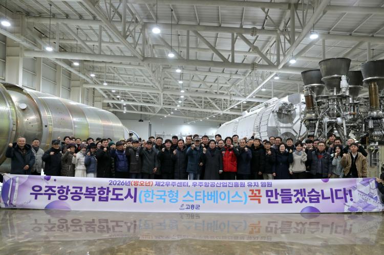 °ø¿µ¹Î ±º¼ö´Â ¡°³ª·Î¿ìÁÖ¼¾ÅÍ¿¡¼ »õÇØ ±ºÁ¤À» ½ÃÀÛÇÏ´Â °ÍÀº °íÈïÀÌ ´ëÇѹα¹ ¿ìÁÖ»ê¾÷ÀÇ Áß½ÉÀÓÀ» ¼±¾ðÇÏ´Â »ó¡Àû Ãâ¹ß¡±À̶ó¸ç ¡°2026³â¿¡´Â Á¦2¿ìÁÖ¼¾ÅÍ¿Í ¿ìÁÖÇ×°ø»ê¾÷ÁøÈï¿ø À¯Ä¡, ¿ìÁÖÇ×°øº¹ÇÕµµ½Ã °Ç¼³ ±â¹Ý ¸¶·ÃÀ» Â÷Áú ¾øÀÌ ÃßÁøÇØ °íÈïÀ» ±¹°¡ ¿ìÁÖÀü·«ÀÇ ÇÙ½É °ÅÁ¡ÀÌÀÚ ¹Ì·¡Çü ¿ìÁÖµµ½Ã·Î µµ¾à½ÃŰ°Ú´Ù¡±°í ¸»Çß´Ù.