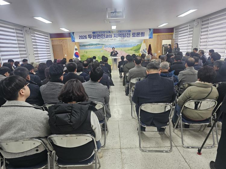 21ÀÏ 10½Ã µÎ¿ø¸é»ç¹«¼Ò ´ëȸÀǽǿ¡´Â "°íÈïÀÇ ¹ßÀü µÎ¿ø¸éÀÌ À̲ö´Ù" ¶õ ½½·Î°Ç ¾Æ·¡ ¼ÛÇü°ï µµÀÇ¿ø ±è¹Ì°æ Çѽ¿Á Àü¸í¼÷ ¹Ú°æ¼® ±ºÀÇ¿ø µî Áö¿ª À¯Áöµé°ú ÁֹΠ200 ¿©¸íÀÌ Âü¼®ÇØ ¿¶í Åä·Ðȸ°¡ À̾îÁ³´Ù.