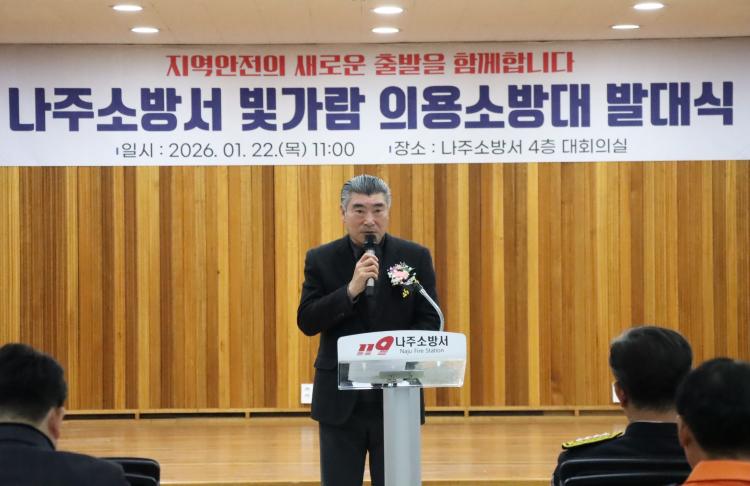 Àü¶ó³²µµÀÇȸ ÃÖ¸í¼ö µµÀÇ¿ø(´õºÒ¾î¹ÎÁִ硤³ªÁÖ2)Àº 1¿ù 22ÀÏ ³ªÁÖ¼Ò¹æ¼ ´ëȸÀǽǿ¡ ¿¸° ¡®ºû°¡¶÷ ÀÇ¿ë¼Ò¹æ´ë ¹ß´ë½Ä¡¯¿¡ Âü¼®ÇØ ¹ß´ë¸¦ ÃàÇÏÇϰí, Áö¿ª ¾ÈÀü °È¸¦ À§ÇÑ ÀÇ¿ë¼Ò¹æ´ëÀÇ ¿ªÇÒ°ú Á߿伺À» °Á¶Çß´Ù.