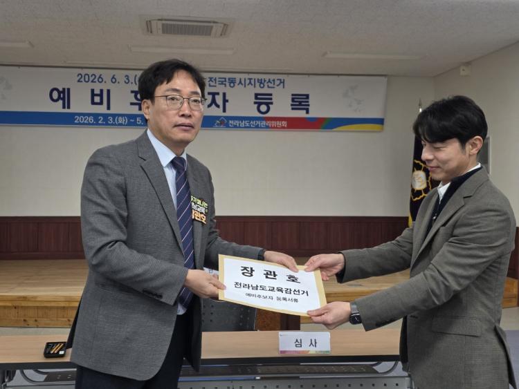 Àü¶ó³²µµ±³À°°¨ ¼±°Å¿¡ Ã⸶ÇÑ Àå°üÈ£ ´ëÇ¥°¡ 2¿ù 3ÀÏ(È) ¿ÀÀü 10½Ã 30ºÐ, Àü¶ó³²µµ¼±°Å°ü¸®À§¿øÈ¸¿¡¼ ¿¹ºñÈĺ¸ÀÚ µî·ÏÀ» ¸¶ÃÆ´Ù.