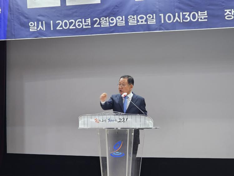 ½Å¼ø½Ä Àü Àü³²Ã¼½ÅûÀåÀÌ 9ÀÏ °íÈï¹®Èȸ°ü ¼Û¼ø¼·½Ç¿¡¼ ±âÀÚȸ°ßÀ» ¿°í Â÷±â °íÈﱺ¼ö ¼±°Å Ã⸶¸¦ °ø½Ä ¼±¾ðÇß´Ù. ½Å Àü ûÀåÀº Ã⸶ ¿¹Á¤ÀÚ Áß °¡Àå ¹ß ºü¸£°Ô Ã⸶¸¦ °ø½ÄÈÇÏ¸ç ¡°30³â ±¹Á¤ °æÇèÀÇ °ËÁõµÈ ½Ç·ÂÀ¸·Î °íÈïÀÇ ´ëÀüȯÀ» À̲ø°Ú´Ù¡±°í Æ÷ºÎ¸¦ ¹àÇû´Ù.