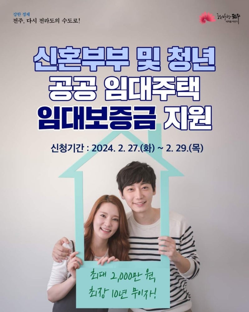¡Û ½Ã´Â ¿À´Â 3¿ù 9ÀϺÎÅÍ 4¿ù 10ÀϱîÁö ÀüÁֽà ÅëÇÕ½ÅûÁö¿ø(www.jeonju.go.kr/reserve)À» ÅëÇØ ¡®2026³â ÀüÁֽà ½ÅÈ¥ºÎºÎ ¹× û³â °ø°øÀÓ´ëÁÖÅà ÀӴ뺸Áõ±Ý Áö¿ø»ç¾÷¡¯ Áö¿ø ´ë»óÀÚ¸¦ ¸ðÁýÇÒ °èȹÀ̶ó°í 18ÀÏ ¹àÇû´Ù.