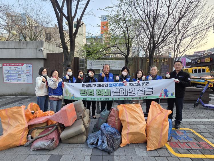 ¾Èö¼ö ±¤¾È1µ¿ÀåÀº ¡°¾öÁö¸¶À»ÀÇ È¯°æÁ¤ºñ¸¦ À§ÇØ ¾ÕÀå¼ ÁֽŠÀÚÀ¯ÃÑ¿¬¸Í ȸ¿øºÐµé²² °¨»çµå¸®¸ç, ¾ÕÀ¸·Îµµ ÄèÀûÇÑ µµ½Ã ¹Ì°üÀ» À§ÇØ ³ë·ÂÇϰڴ١±¶ó°í ÀüÇß´Ù.