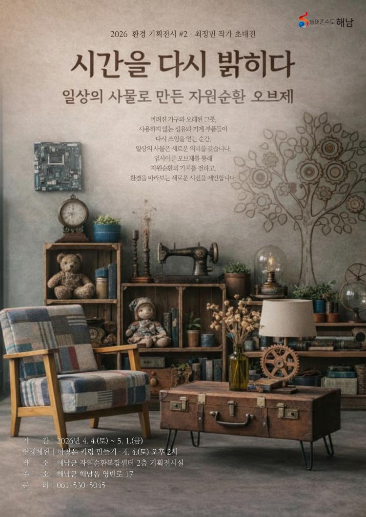 ÇØ³²±ºÀÚ¿ø¼øÈ¯º¹ÇÕ¼¾ÅÍ´Â 4¿ù 4ÀϺÎÅÍ 5¿ù 1ÀϱîÁö ȯ°æ±âȹ Àü½Ã¡®½Ã°£À» ´Ù½Ã ¹àÈ÷´Ù–ÀÏ»óÀÇ »ç¹°·Î ¸¸µç ÀÚ¿ø¼øÈ¯ ¿ÀºêÁ¦¡¯¸¦ ¼±º¸ÀδÙ.