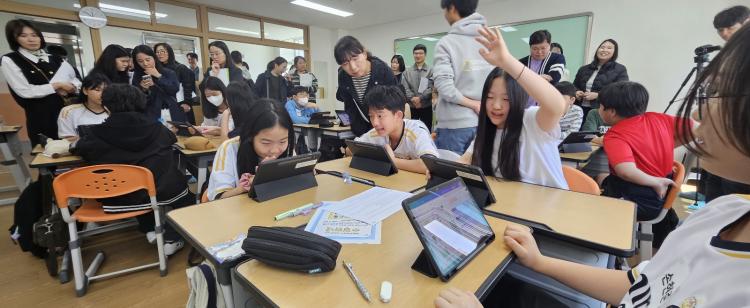¿µ¾î°ú ¼ö¾÷¿¡¼´Â AI ±â¼úÀ» Ȱ¿ëÇØ ÇлýµéÀÌ ÀÚ½ÅÀÇ °¨Á¤¿¡ ¾î¿ï¸®´Â ¾Æ¹ÙŸ¸¦ Á÷Á¢ »ý¼ºÇϰí, ½º½º·Î ±¸¼ºÇÑ ¿µ¾î ´ë»ç·Î ´ëÈÇϴ Ȱµ¿ÀÌ ÆîÃÄÁ® ´«±æÀ» ²ø¾ú´Ù. ¼ö¾÷À» ¼³°èÇÑ ±¤¿µÃÊ ±è¡Û¡Û ±³»ç´Â¡°ÇлýµéÀÌ µðÁöÅÐ µµ±¸¸¦ Ȱ¿ëÇØ ½º½º·Î ¿µ¾î·Î Ç¥ÇöÇϸç, ÀÚ±â ÀÌÇØ¿Í °ø°¨ ¿ª·®À» ±â¸£´Â ÁÖµµ¼º Ű¿ò ¼ö¾÷¿¡ ÁßÁ¡À» µÎ¾ú´Ù¡±°í ¸»Çß´Ù.