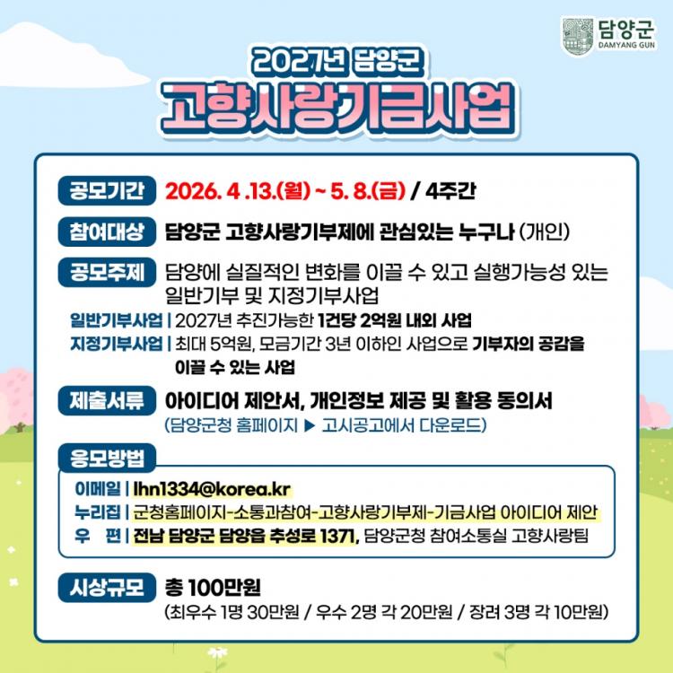 ´ã¾ç±º, ¡®2027³â °íÇâ»ç¶û±â±Ý»ç¾÷ ¾ÆÀ̵ð¾î °ø¸ð¡¯ ½ÃÀÛ